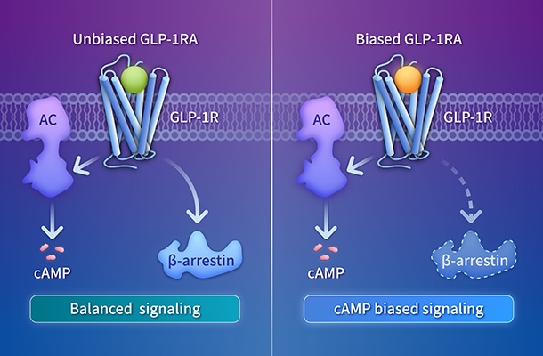 BiasVantage? 偏向型激動(dòng)劑發(fā)現平臺利用基于結構的合理設計及全面的信號傳導分析,打造療效增強、脫敏程度降低的精準療法。該平臺開(kāi)發(fā)信號選擇性配體,通過(guò)降低脫敏程度延長(cháng)受體活性,從而比非偏向型方法獲得更佳的治療效果。